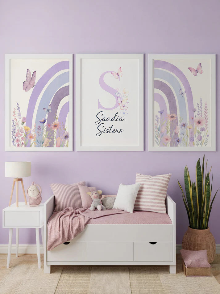 Set of 3: Lilac Floral Rainbow Posters
